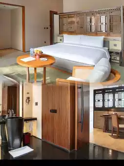 The moment you step into the hotel, it feels like traveling back to the Ming and Qing dynasties. Exquisite wood carvings and stone engravings tell stories of history in every detail. The hotel has only 35 villas, offering a full sense of privacy! Rooms start at 100 square meters and come with private gardens and courtyard views. Staying here feels like having your own little world 🌼