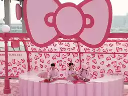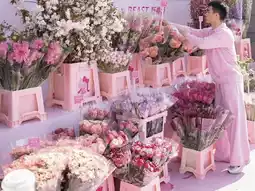 The event is decorated with a pink theme and Hello Kitty characters. There is a giant Hello Kitty doll at the entrance. Various booths sell colorful flowers and many Hello Kitty-related products. If you miss it this year, you can come again next year because the event is held annually.