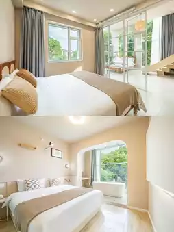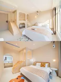 🌟Facilities: The homestay has an outdoor swimming pool for you to enjoy swimming in the summer. The rooms are equipped with smart door locks, air conditioning, hairdryers, and other basic facilities, as well as free Wi-Fi. In addition, the parent-child themed rooms are full of childlike fun, making children feel as if they are in a fairy tale world. Some rooms also cleverly use space to set up leisure areas, giving you more corners to relax.