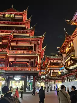The Yuyuan Garden Shopping Mall area in Shanghai is a paradise for shoppers and food lovers. Walking inside feels like strolling through an ancient Chinese market, with building walls adorned with flute and fan patterns, and soft Chinese music playing along the way.