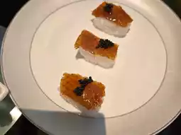 First, they serve meat in the form of sushi topped with caviar as an appetizer, which was so tasty🤭