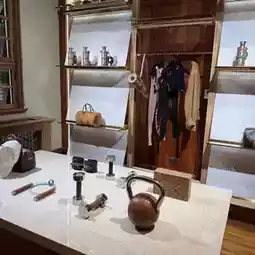 The second floor is the exhibition, divided into four rooms: one for perfume exhibition, one for Celine products with a sports theme, one for watching videos, and one for DIY postcards where you can stamp and write
