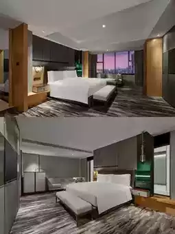 🛏 Room facilities: The hotel’s newly upgraded Building 1 rooms are inspired by Shanghai Shikumen elements, using a high-end dark green color scheme to reflect elegant fashion. Room sizes range from 46 to 97 square meters, bathrooms are equipped with separate bathtubs and showers, and mineral water provided is regular Ice Dew.