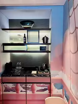 From the ceiling to the carpet underfoot, from the graffiti on the glass window on the left to the minibar on the right, everything is designed with the theme. The room has a bunk bed specially for children, child-friendly toiletries on the washbasin, children’s size monkey bathrobes in the wardrobe, and a complimentary puzzle on the table. When checking out, children also receive a special little gift.