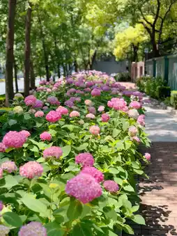 In summary, this is the hydrangea path in the green belt of Zhaojiabang Road next to Xujiahui Park. The flower density is quite good, making it a nice choice for photography or just relaxing.