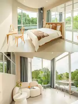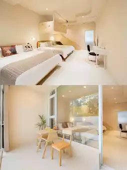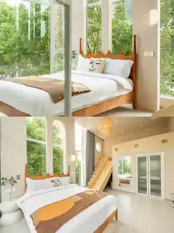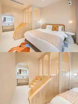 - Unique decoration: Rooms have cute names like Honey and Pearl, with warm and cozy decor. Light walnut furniture, beige walls, and warm yellow lighting complement each other to create a warm and romantic atmosphere.