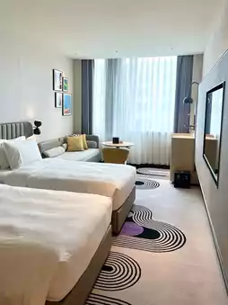 The self-check-in machines in the lobby act like thoughtful butlers, completing the process in 45 seconds. The best part is how deeply integrated they are with the airport details 💥 The hotel lobby and restaurant even have real-time flight status screens just like the terminal! No need to keep checking your phone, you can stay updated on flight info anytime, giving a huge sense of security! Whether rushing for business or on a vacation layover, it’s super convenient~