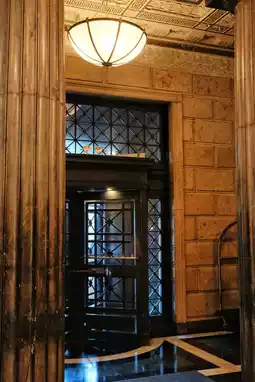 Push open the original 1926 brass handle revolving door and enter the lobby. Look up to see the intricately carved three-dimensional lily dome, lavish and ornate. The 18 cloud-patterned stone columns in the lobby are said to be whole blocks of Italian marble shipped by sea. The historic old elevator doors still retain cast iron vine patterns, cool and heavy to the touch.