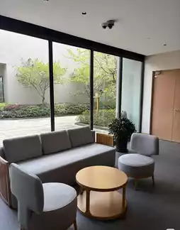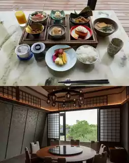 Stepping into the room, the full Japanese minimalist style instantly relaxes you. L'Occitane amenities, floor heating, and even a capsule coffee machine... who wouldn’t love these features? Driving into the hotel, the Japanese-style vibe hits you, giving a refined and elegant feeling. The restaurant is on the right side of the hotel entrance, and the small courtyard really won my heart. Inside the restaurant, the space is quite large; sitting by the window, there’s a pond a little further out with blooming water lilies.