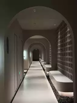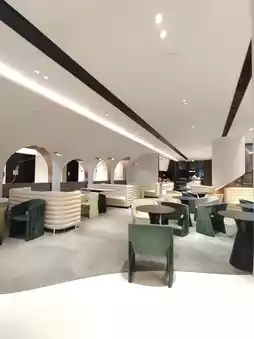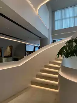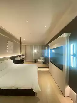 Step into the hotel lobby, where modern style and exquisite design blend perfectly. The spacious and bright area features a hanging replica of a lunar meteorite, adding a touch of mysterious romance to the lobby. The winding pure white staircase, layered like a work of art with a sculptural feel, creates a strong visual impact, making you feel as if you are in an art gallery, irresistible to take photos and check in.