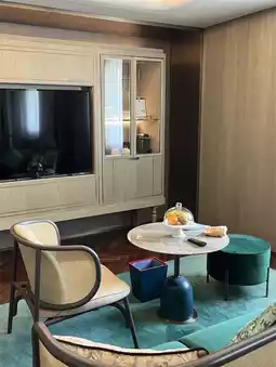 Stepping into the hotel feels like entering an art palace. The lobby’s design cleverly combines Shanghai-style culture with modern aesthetics, featuring brass-toned interiors paired with the “Blooming Flowers” theme, creating a calm and elegant yet romantic atmosphere. The blue sofas in the public area offer the perfect viewing spot; sitting there, you can take in the magnificent views of the Huangpu River, the Oriental Pearl Tower, and the “Three-piece Set” skyline. Whether snapping photos or quietly enjoying the moment, it’s incredibly pleasant. In the guest rooms, antique floral patterns adorn the ink-wash walls, complemented by bold and lively colors of green, orange, pink, and blue, creating a warm and romantic ambiance. The Bund panoramic deluxe rooms offer an unobstructed view of the Magic City’s skyline; standing by the window, it feels as if the whole world is at your feet. The bathroom features a dry and wet separation and is equipped with high-quality Israeli national brand AHAVA toiletries. The minibar’s drinks and snacks are free to enjoy, with every detail thoughtfully considered.