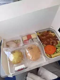- 🍝 Meals on the plane are served generously on every flight. We had 4 meals during the layover in Guangzhou 🤣 The taste is okay 🍲