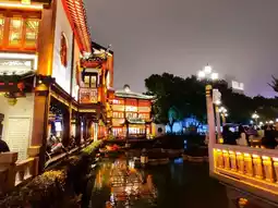 🎈 Yuyuan Old Street, the ancient pedestrian street in downtown Shanghai, is located around Yuyuan Garden, Cheng Huang Miao, or the Town God Temple of Shanghai, all in the same area. The atmosphere is Chinese style, with architecture that gives the feeling of truly being in China. At night, the colorful lights illuminate the buildings in deep red and gold tones, creating a very beautiful and stunning scene. There are many restaurants and shops, such as Nanxiang Steamed Bun (a century-old xiaolongbao shop), Da Xing, Canton Table, Sheng Yong Xing, the famous tea shop Chagee, and Heytea, among others. Yuyuan Old Street is one of the must-visit spots when coming to Shanghai.