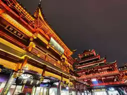 Yuyuan Ancient Pedestrian Street in downtown Shanghai is very beautiful at night