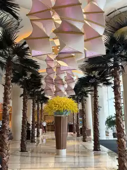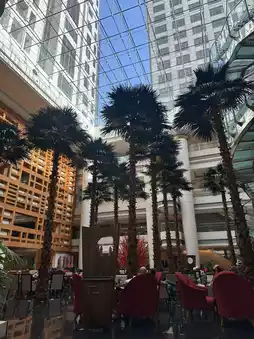 The hotel lobby features high ceilings and palm trees, creating an exotic atmosphere. It felt like being at a resort in the city, and just sitting and resting in the lobby was healing. During checkout, the staff personally helped carry my luggage, showing attentive service that was much appreciated.