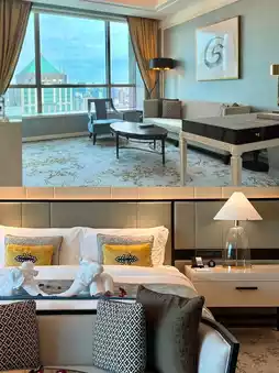 I booked the **St. Regis Suite**, and was stunned the moment I opened the door — **panoramic floor-to-ceiling windows facing the Shanghai skyline**, watching clouds drift by during the day and the Bund’s lights at night, every shot looks like a blockbuster! 📸