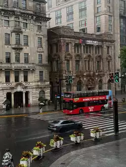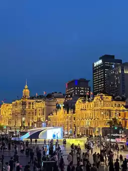 The Bund (外滩, Wàitān) is a famous waterfront area in central Shanghai that runs along the west bank of the Huangpu River and it's known for:
