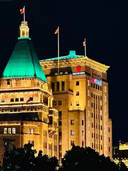 Night: Entire skyline lights up — magical for evening strolls and photos
