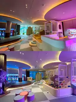 When night falls, lights illuminate the water surface at the bottom of the pit. Outside the glass curtain wall, water curtain animations are projected from time to time, with whales and jellyfish slowly swimming at the bottom of the pit. The changing light and shadow make it feel like entering a magical secret realm.