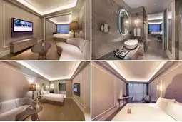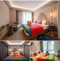The room design features a modern minimalist style, with sophisticated gray tones and soft lighting, creating a fully immersive atmosphere✨ The bed firmness is just right, sleeping here feels like a "deep sleep spa"; the bathroom has a dry and wet separation, with a luxurious marble texture, smart mirrors, and branded toiletries, all details embodying "exquisiteness." The family-themed rooms are even better, with small tents and cute plush toys, turning kids into "happy little owners" instantly, while parents can sneak in some quiet time~
