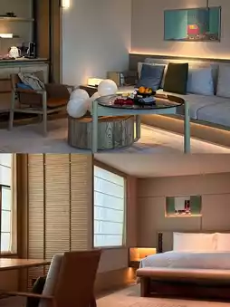|A Sanctuary in the City, Peace Amidst the Bustle. From stepping into the hotel to checking in at the front desk, and then taking the elevator to the room, the whole experience feels like traveling through time. Stepping out of the elevator, you immediately see the sky garden, surrounded by facilities such as restaurants, bars, and a library. The hotel offers its own blended essential oils—I really love their scent, and the manager was so kind to give us two small bottles. The only minor drawback is that the lighting in the public areas is a bit dim, and since we arrived at night, it was even a little hard to see clearly.