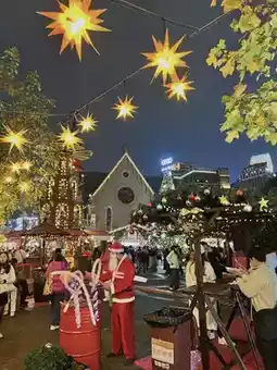 — Throughout the city, Christmas trees are decorated to celebrate the festival starting from early December. The lively atmosphere lasts all month, and the city is filled with beautiful lights.