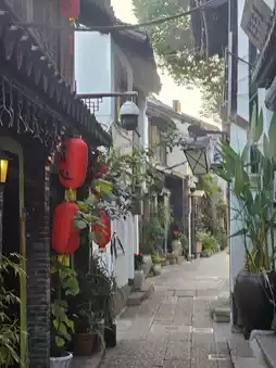 Spend time walking along the stone bridge, observing the traditional architecture lining both sides of the canal. The white-washed walls with black-tiled roofs create a striking contrast against the water, embodying classical Jiangnan (south of the Yangtze River) architectural style.