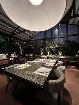 The overall vibe is minimalist yet warm, natural yet upscale—a space that encourages slow dining and long conversations. Whether you’re seated in the main atrium or tucked away upstairs in the private dining area, you’re in for a serene and refined experience.