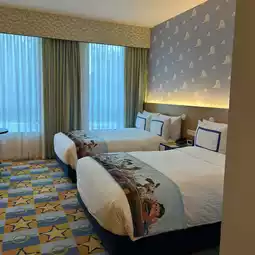 I stayed at the Toy Story Hotel for two nights this time. The room was spacious, comfortable, and the sleep was good, so it was a fun experience!
