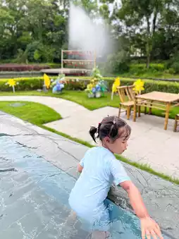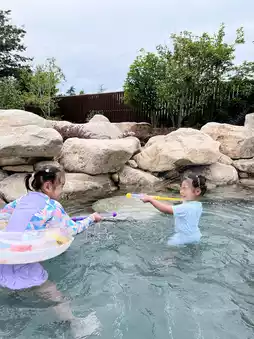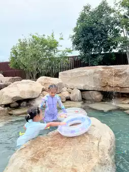 ✔️ Cold Spring Area: Rather than a cold spring, it’s more like a warm spring. In the afternoon, the spring water warms up. There are two infinity pools that are great for photos; also a Japanese-style sacred tree pool, a traditional pool, and many bubble-filled parent-child pools. This area is shaded, perfect for playing when the midday sun is strong;