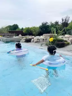 ✔️ Outdoor Panoramic Infinity Pool: The water is a bit deep and has a slide, better suited for older kids;
