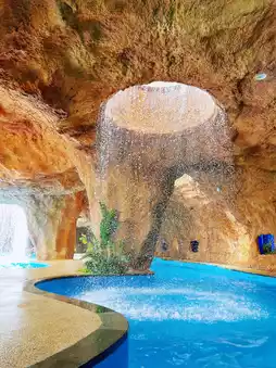 ✔️ Mysterious Amazon Cave and Vertical Skylight Waterfall: A 710㎡ Amazon cave simulating tropical rainforest water curtains, plus 5 large cave waterfalls. Standing under the waterfalls, the cool mist hits your face—it’s really refreshing;