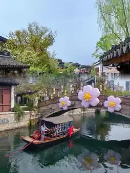 Take a flower boat in the evening to cruise 3 kilometers of waterways (50 RMB/person, 200 RMB for a private boat up to 6 people), passing through the misty covered bridge with lanterns reflecting on the water—every snapshot looks like a scene from "Dream of Splendor" Jiangnan nightscape🌉✨!