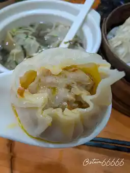 The wonton skin is thin and smooth, the filling well-mixed and not loose. The mushroom enhances the flavor perfectly, and the vegetable-to-meat ratio is just right without overpowering. The broth is light with a slight sweetness, warming the stomach without being salty. Perfect as a main dish or paired with dim sum.