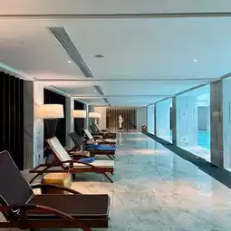 A massive 22m × 10m pool on the basement level, spacious enough for three people to swim side by side! The entire transparent glass ceiling is incredible—sunlight pours in on sunny days, creating a cool, sophisticated vibe on cloudy days, and the lighting at night is simply dreamy! Surrounded by statues of ancient Greek gods, every corner feels like an art gallery, completely different from modern pools, with a fully classical atmosphere~