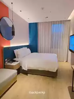 🏡We booked our stay through Trip.com @trip.com_th, confident that the room matches the description, with 24-hour chat support available. The room we chose was a Deluxe Room, which has no window view but doesn’t feel cramped. What we liked was that there was no cigarette smell in the room (a bit of a gamble in China). The room is large and spacious enough to open two large suitcases. The shower and toilet are separate, with a bathtub and a large mirror, plus a small clothes drying rack. Overall, it’s worth the price. The room looks new and safe🚶♂️🚶♀️