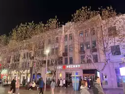 ▸ The Industrial and Commercial Bank sign glows warmly on the brick wall! A vintage bus drags a golden tail as it passes by, and tree shadows dip dry branches into building lights to write wild cursive.