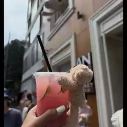 • What I did: Ordered a Rose Latte (~36 RMB) and picked a tiny teddy bear to hang on the glass, instantly adding heart to start the day bright 💖