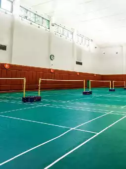 The bright and spacious badminton hall offers an exhilarating competition experience.