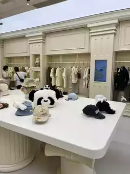 The first floor is dedicated to takeout orders, while the second floor features a charming showroom filled with goods like teddy bear figurines, eco-bags, and clothing. It's a delightful place to browse and shop.
