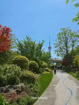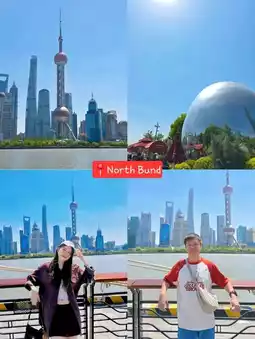We started with the popular Chinese milk tea and iced tea that everyone must try at "Chagee." After that, we crossed the street to visit and take photos at the large public park known as "North Bund" 📡