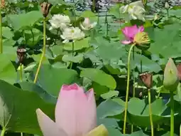 The lotus ponds, filled with pink, light pink, and white blossoms of various types, are stunningly beautiful. Ducks wandering around the ponds add to the peaceful scenery. I was surprised to find that the lotuses emitted a fresh fragrance, contrary to my previous belief that lotuses are scentless!