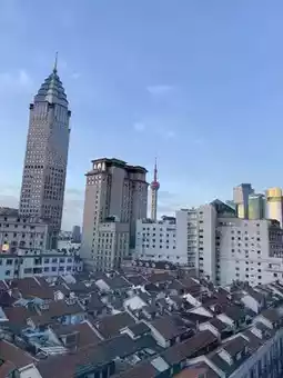 Looking out from the hotel lobby glass window, I saw rows of neatly arranged red and white rooftops and was curious about what they were. After searching online, it turned out to be Yong'an Fang - a century-old Shikumen building, from which residents moved out years ago.