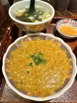 🍜 The crab roe noodle set comes in a fairly large bowl and includes side dishes and soup.