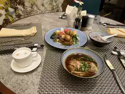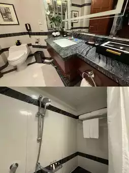 Thoughtful complimentary fruit and wontons with juice delivered to the room, delicious breakfast, and spacious, comfortable rooms and bathrooms.