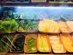 • Vegetables, mushrooms, tofu, minced shrimp, meatballs, very generous selection