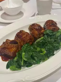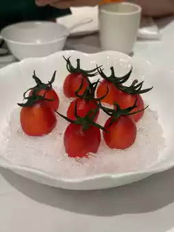 The best dishes of the evening were the iced stuffed tomatoes and foie gras scallion pancakes. The iced stuffed tomatoes had cheese stuffed inside cherry tomatoes; the cheese was slightly sweet and sour, with a bursting texture that was a pleasant surprise. The foie gras scallion pancakes had a rich foie gras flavor paired with fried scallion pancakes, so delicious you couldn't stop eating.
