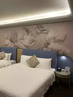 We were three people and stayed in a superior family room. The room was very large, about 45 square meters. Although there was no view outside the window, it still felt very comfortable. The room had a long sofa, a combination cabinet, giving a homey feeling. On the wall behind the bed, there was a floral mural, very artistic and beautiful.