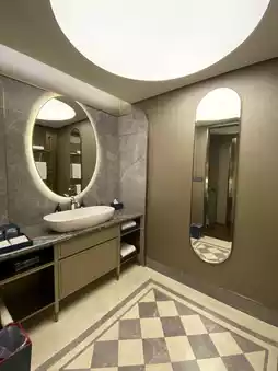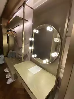 The bathroom had a dry and wet separation. The best part was the large bathroom with a full-length mirror. Outside the bathroom, there was a vanity table with lights and a place to hang clothes. Closing the bedroom door made it like a huge walk-in closet, which girls would love. The bathroom also had a thermostatic towel rack, giving a very high-end feeling 😊😊