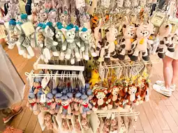 • The right side focuses especially on Duffy & Friends characters (Duffy the bear, ShellieMay, Linabell), with plush toys, keychains, and limited edition products.